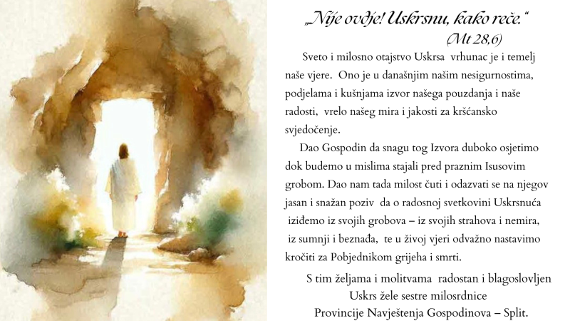 Mi, sestre milosrdnice u Splitu, svečano smo u srijedu, 25. ožujka ove godine, proslavile svetkovinu Navještenja Gospodinova – Blagovijest, koja je patron naše Provincije. Toj proslavi prethodila je trodnevna duhovna priprava protkana dubokim razmatranjima o vjeri, milosrđu i poniznosti.
