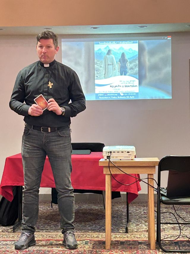 Središnji dio prijepodneva obilježilo je sadržajno predavanje don Marija Bobića, SDB, pod naslovom „Ostani s nama“ (prepoznati Isusa u svom životu). Kako bi djevojke što dublje uveo u temu i potaknuo ih na poniranje u vlastitu nutrinu, don Mario se poslužio simbolikom Dixit kartica (kartice za poticanje kreativnosti i asocijacija); djevojke su na početku birale karticu koja ih asocira na razlog dolaska, dok su na kraju izlaganja, nakon zajedničkog razmišljanja o temi, izborom kartica izrazile osjećaje i plodove hoda s Kristom. Don Mario im je na neposredan način približio lik Uskrsloga, kao suputnika koji nevidljivo korača uz čovjeka i onda kada ga on ne prepoznaje. Poseban naglasak stavio je na osobno promišljanje – iskrena pitanja o stanju vlastitog srca, o bolovima i umoru, o područjima života u kojima još ne puštamo Boga te o strahovima koji priječe potpuno povjerenje u Njega. Ta su pitanja potaknula djevojke da bez uljepšavanja sagledaju svoju nutrinu i prepoznaju kako ih i kamo Isus danas želi povesti.