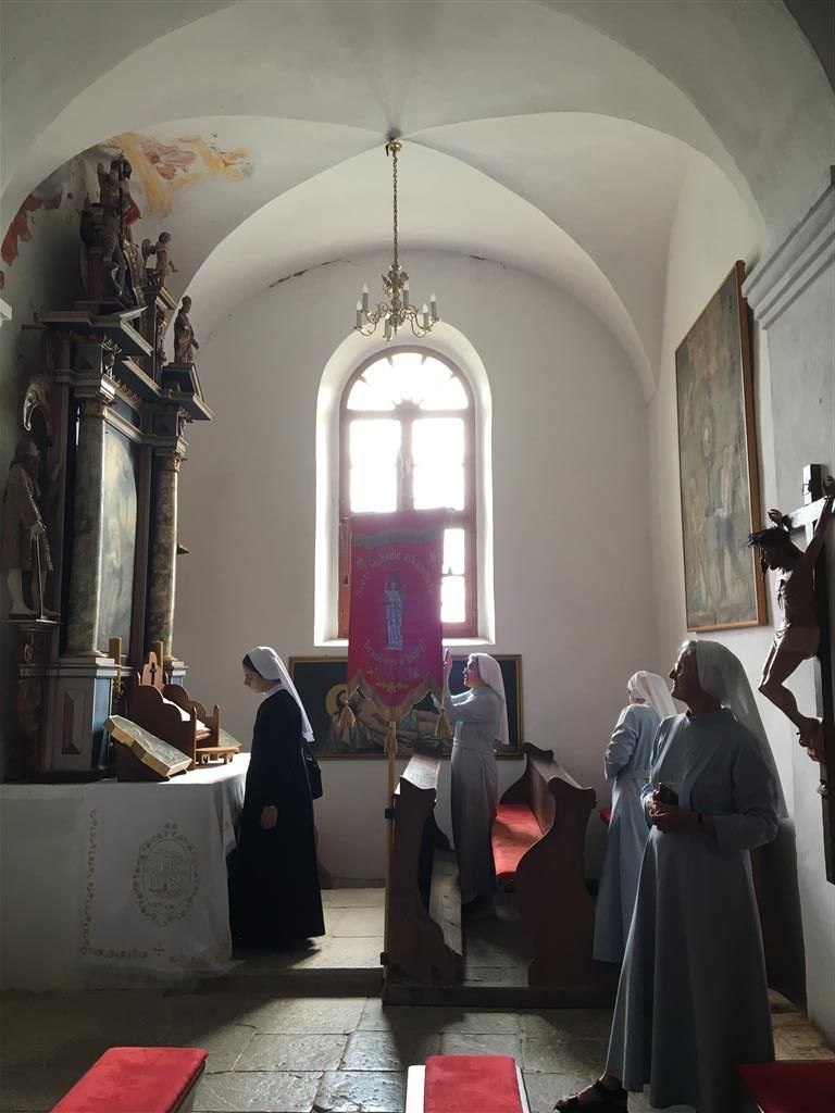 Putovanje do Lužnice obogatile smo posjetom pavlinskom samostanu Svetice kod Ozlja u kojem kao upravitelj Župe Rođenja BD Marije djeluje o. Marko Kornelije Glogović, OSPPE. Osim što je to jedan od malobrojnih pavlinskih samostana u kojem i danas djeluju pavlini, nama je taj posjet imao i posebno značenje. Naime, uz samostan i pastoralno djelovanje za vrijeme i nakon II. svjetskog rata duboko se veže i ime svećenika, lazarista o. Janeza Strašeka za kojeg je kardinal Josip Bozanić na svetkovinu Presvetog Srca Isusova, 11. lipnja, izdao proglas „Kauza beatifikacije sluge Božjega p. Janeza Strašeka C.M. iz Misijske družbe svetog Vinka Paulskoga“. On je ubijen iz mržnje prema vjeri i to nakon II. svjetskoga rata, a grob mu se nalazi na mjesnom groblju u Sveticama. Nakon obilaska samostana pod vodstvom domaćice samostana, nastavile smo put prema Marijinu dvoru u Lužnici.