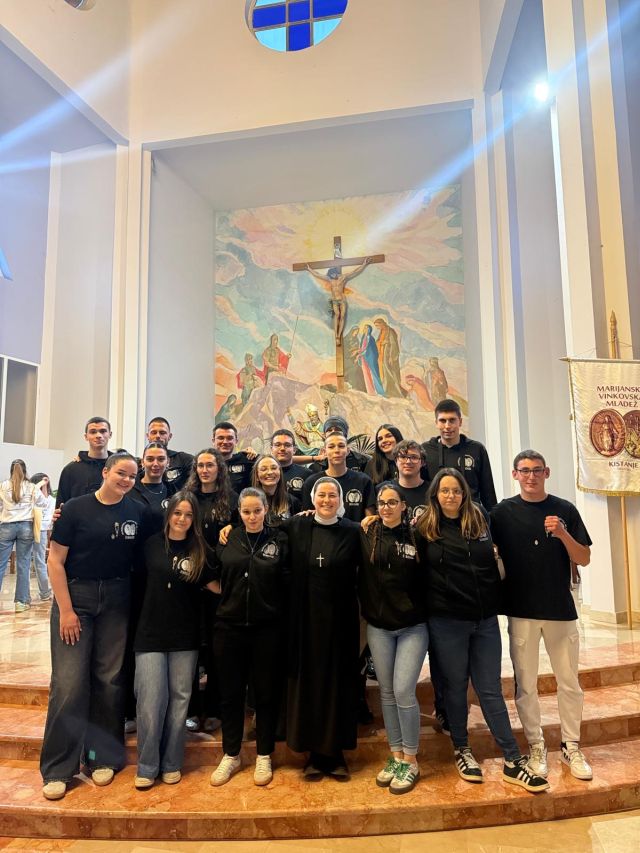 Marijanska vinkovska mladež međunarodna je zajednica mladih koja djeluje pod geslom Po Mariji k Isusu. Nacionalna savjetnica MVM Hrvatska je s. Antonija Delonga. Ona je na kraju misnog slavlja zahvalila Bogu na tom svečanom i blagoslovljenom danu te don Alojziju na spremnosti da ga proslavi u zajedništvu s mladima predvodeći euharistiju. Čestitala je mladima na učinjenim duhovnim koracima, posebice onima koji su svoje članstvo u MVM hrabro okrunili posvetom, postavši tako njezinim punopravnim članovima. Prenijela im je potom čestitku i podršku provincijalne poglavarice s. M. Martine Prcela i svih sestara Provincije Navještenja Gospodinova te ih potakla da poput sv. Vinka potpuno povjere svoje putove Isusu po Mariji kako se ne bi izgubili u zamkama svijeta. Čudotvorna medaljica, koja je vidljivi znak MVM, rekla je, bit će im trajnim izvorom milosti koje se izlijevaju po Marijinim rukama. Obred je tijekom mise koordinirala predsjednica MVM Hrvatska Josipa Bukarica, koja je također uputila iskrene čestitke svima. Nakon misnoga slavlja radosno je zajedništvo nastavljeno u župnoj dvorani, gdje se na nov način očitovala snaga vinkovske karizme koja živi među mladima.
