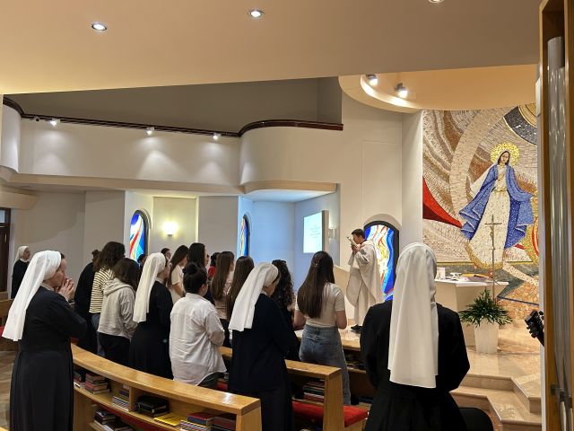 Po završetku predavanja djevojke su imale prigodu za svetu ispovijed, a potom je uslijedila sveta misa, taj povlašteni i trajni susret s Gospodinom u lomljenju kruha. Liturgijsko su slavlje skladnim pjevanjem animirale sestre.