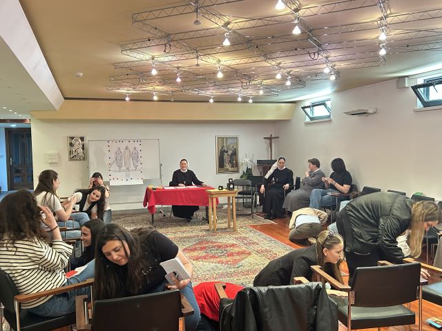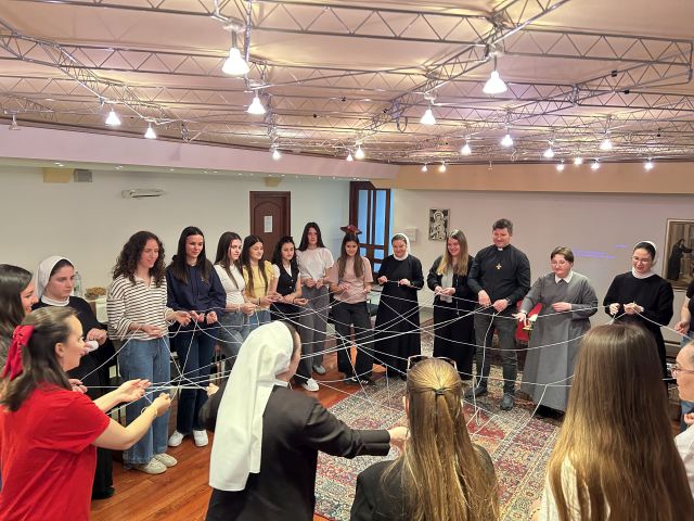 U subotu, 18. travnja 2026., naš samostan sv. Vinka u Splitu širom je otvorio vrata djevojkama iz Splita, Šibenika, Kistanja, Sinja i Trilja koje su se okupile na duhovnoj obnovi pod nazivom „U hodu s Uskrslim“. Program je započeo uvodnom molitvom i riječima pozdrava, nakon čega je slijedilo upoznavanje sudionica na kreativan način – uz pomoć klupka konca, što je odmah povezalo sve prisutne i stvorilo srdačno ozračje zajedništva.