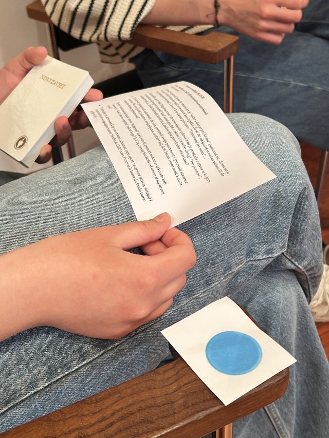 Nakon te duboke izmjene misli i osjećaja, svaka je sudionica na izrezane papirnate „kamenčiće“ ispisala prepreke koje ju spotiču na putu rasta u vjeri i priječe da uistinu doživi Krista. Nasuprot tome, na izrezanim plamtećim srcima djevojke su opisivale svoj žar – sve ono lijepo što osjećaju dok razgovaraju s Kristom – osjećaje dubokog mira, ljubavi, sigurnosti i unutarnje slobode. Na kraju, sve su djevojke, jedna za drugom, te simbole s osobnim zapisima lijepile na zajednički plakat, dajući tako i vidljiv pečat proživljenim doživljajima.