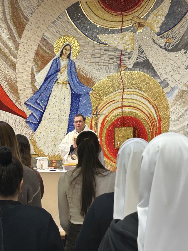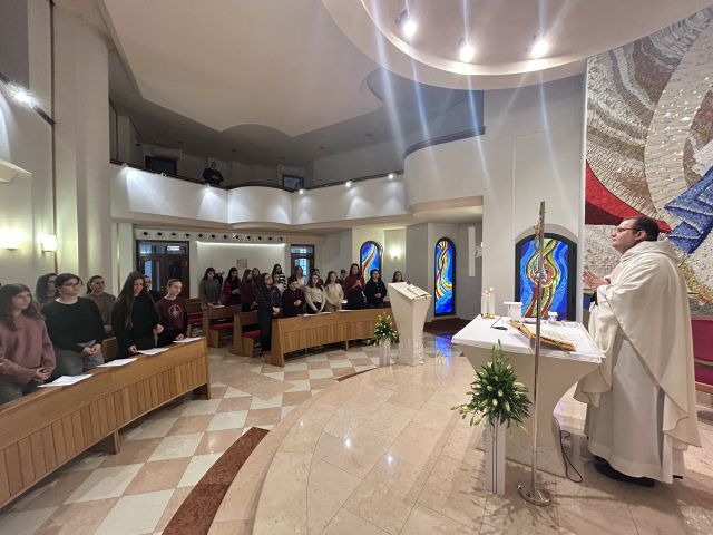 Euharistijsko slavlje predslavio je o. Ante, koji nas je još jednom u propovijedi biranim riječima ohrabrio da se ne bojimo (do)pustiti da u našem životu bude više Isusa a manje nas. Naslanjajući se na evanđeoski tekst dana, u kojem se navodi da su za Isusa govorili da je izvan sebe, pozvao je djevojke da se ne boje etiketiranja da su izvan sebe zbog Isusa jer to zapravo znači da su ispunjene Isusom.
