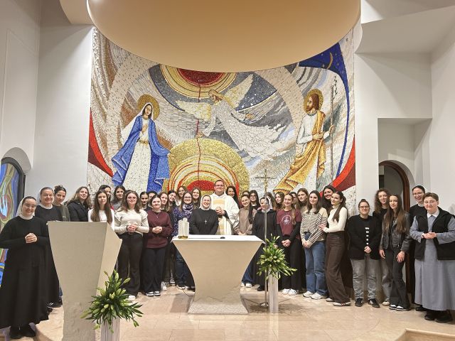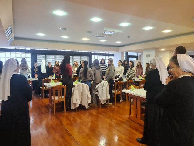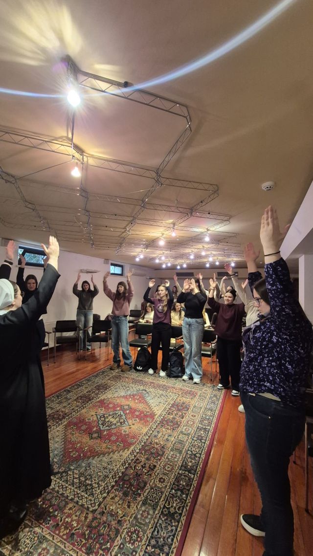 U prostorima našeg samostana u Splitu, u subotu, 24. siječnja 2026., održana je duhovna obnova za srednjoškolke i studentice. Sudjelovalo je 35 djevojaka – iz Splita, Šibenika, Kistanja, Dicma, Sinja i okolice. Duhovnu obnovu zajedničkim smo snagama vodili karmelićanin o. Ante Jakus i mi, sestre milosrdnice. Temeljna misao obnove bila je „Blago siromasima duhom: njihovo je kraljevstvo nebesko!“ (Mt 5,3), koja se pak savršeno zrcali u geslu obnove: „Više Isusa, manje mene!“, kojim je bio prožet svaki dio programa.