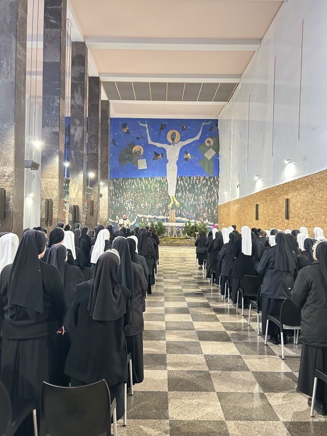 Nakon klanjanja uslijedila je svečana molitva Večernje Božanskog časoslova koju su pjevanjem predvodile Školske sestre franjevke Krista Kralja, a potom je nadbiskup Križić održao prigodni nagovor u kojem je, oslanjajući se na učenja pustinjskih monaha, starih učitelja duhovnosti, govorio o duhovnoj zapuštenosti ili acediji kao napasti koja može zahvatiti osobu u bilo kojoj fazi posvećenog života, a ne samo u srednjoj dobi. Istaknuo je kako su pustinjaci još u prvim stoljećima prepoznavali znakove toga stanja poput gubitka gorljivosti, unutarnjeg nemira, nezadovoljstva i stalne potrebe da se bude „negdje drugdje“. Upozorio je da se u takvom stanju osoba lako povlači iz duhovne borbe jer, kako je naglasio, „kada osoba digne ruke, tada je poražena“. Podsjetio je da su stari duhovni učitelji naglašavali kako duhovna borba nema prekida te da nema razdoblja u životu u kojem bi se moglo „odahnuti“ i prestati bdjeti nad vlastitim pozivom. Dodao je da acedia često vodi u bijeg od vlastitih obveza, traženje izgovora te u pretjeranu usmjerenost na sebe i vlastite poteškoće. Govoreći o posljedicama takvog stanja, istaknuo je kako se tada gubi nutarnja sloboda i radost, a zajednički život postaje teško podnošljiv. Naglasio je kako iz takvog stanja proizlaze kritičnost, gorčina i nesposobnost da se u drugima vidi dobro, dok se istodobno gubi spremnost za praštanje i zahvalnost. Kao središnji problem istaknuo je zapostavljanje molitve, za koju je rekao da je „prva stvar koja se zanemari kada se izgubi nutarnja gorljivost“. Kao put izlaska naveo je ustrajnost, vjernost mjestu i zajednici u koju je osoba postavljena te svjesno vraćanje molitvi i svakodnevnoj duhovnoj borbi. Nagovor je zaključio poticajem da se pogled ponovno usmjeri prema Bogu, jer se samo u tom odnosu, i unatoč teškoćama, obnavljaju radost, nada i vjernost pozivu.